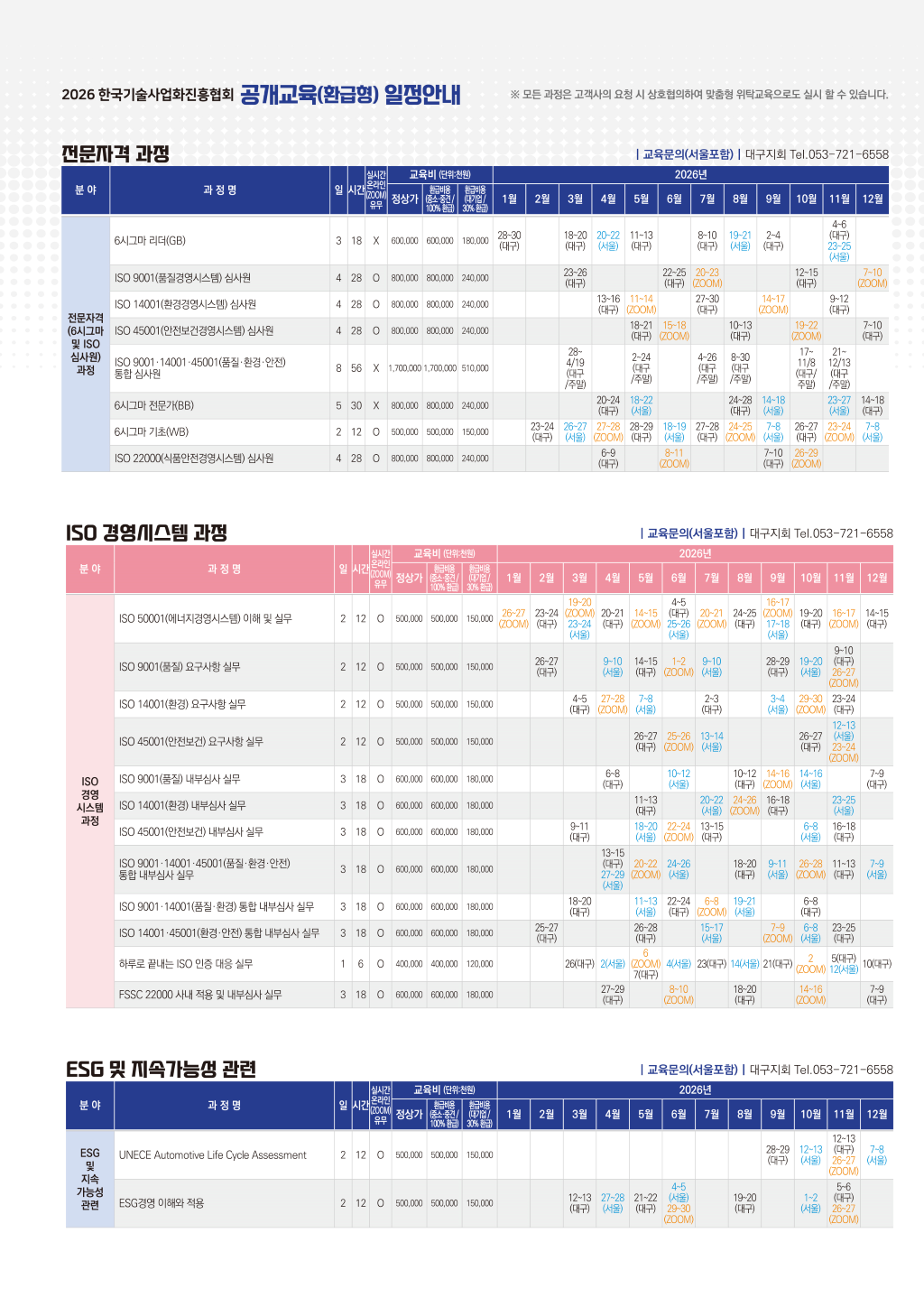 '연간 공개교육' 탭에 등록된 일정에 3명 이상 신청시 개강 확정되며,