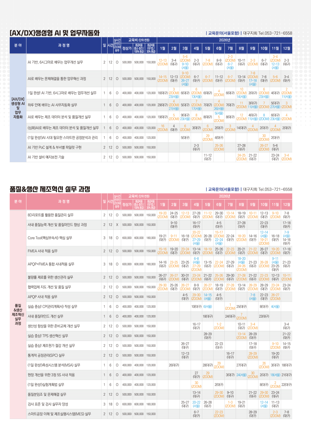 무료교육 오프라인/온라인(ZOOM) 포함 72개 과정이며,